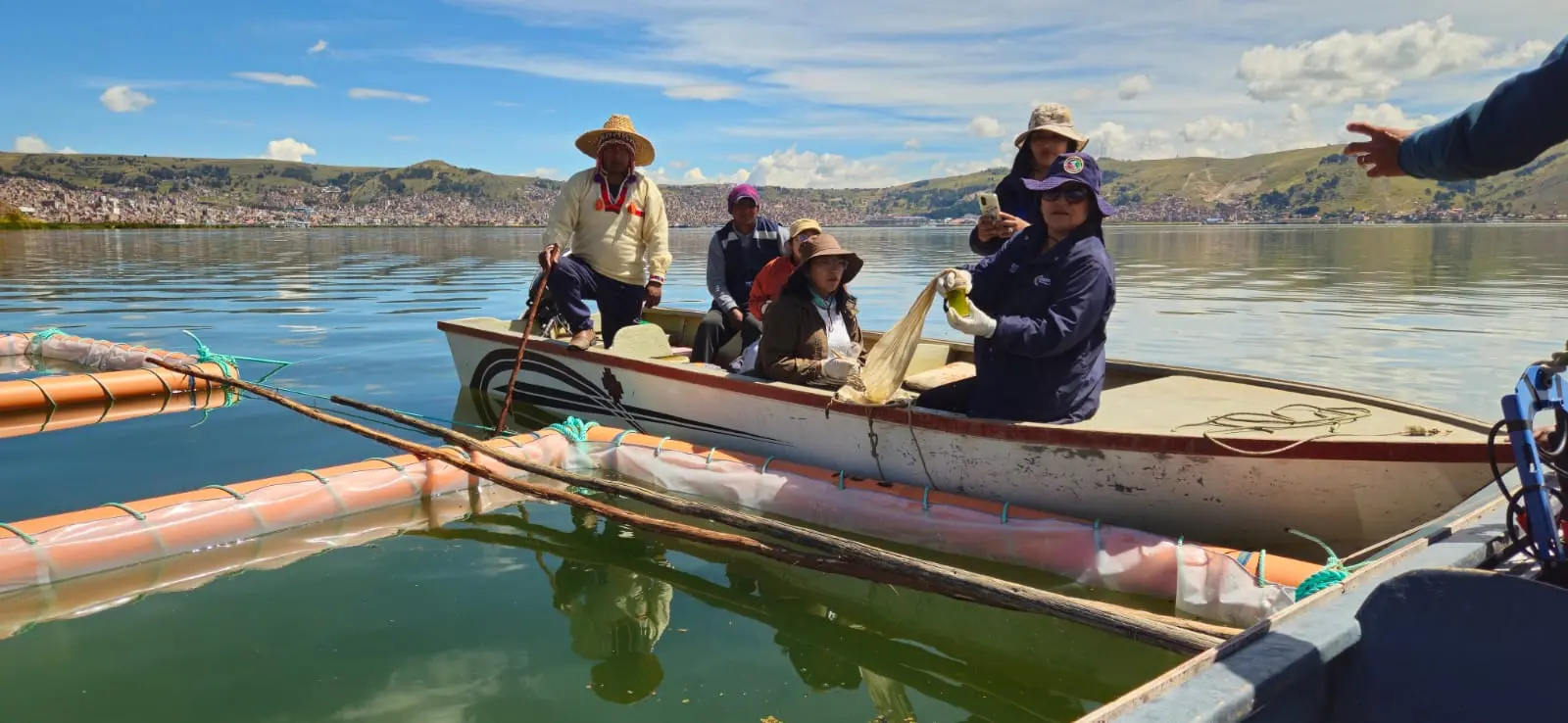 Implementan filtros verdes flotantes con plantas para limpiar una de las zonas más afectadas del lago Titicaca