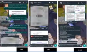 Durante la audiencia, la fiscal también presentó como nuevos elementos de convicción para fundamentar la prisión preventiva, conversaciones de chat de WhatsApp entre Arturo Cárdenas y Marina Vásquez donde esta le envía las bases del concurso, y el dirigente de Perú Libre le remite currículos vitae para determinadas plazas. Incluso le escribe una lista de códigos que deberían ser declarados desiertos en dicho proceso de convocatoria.