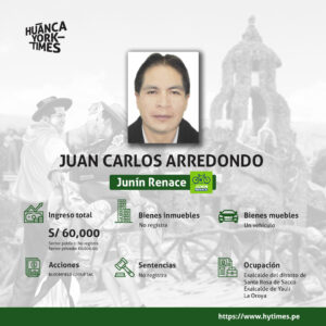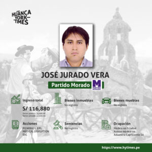 En cambio, el excongresista y empresario de ferreterías y de pinturas, Moisés Guía Pianto, candidato de Junín Sostenible declaró 29 mil 800 soles y el médico de EsSalud, José Jurado, del partido Morado, 116 mil soles.