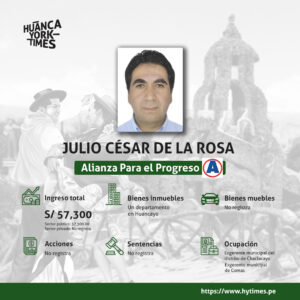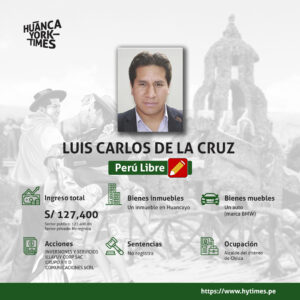 El candidato de Perú Libre a la Municipalidad Provincial de Huancayo, Carlos de la Cruz Sullca, declaró en su hoja de vida 127 mil 400 soles de ingreso anuales, muy superior a lo declarado por sus competidores, entre ellos el empresario, Moisés Guía Pianto y el médico de EsSalud, José Jurado Vera.