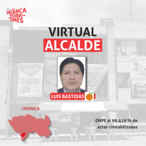 Luís Bastidas (56), es abogado y con el 77% de actas procesadas por la ONPE, se convierte por cuarta vez en alcalde provincial de Chupaca. La vez anterior (2015 – 2018) ganó las elecciones con Junín Sostenible. También fue regidor de esta provincia en el periodo 2007 – 2010.