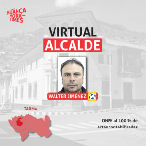 Con el respaldo de 14 mil 326 ciudadanos, Walter Jiménez (49) consiguió ganar en Tarma, dándole un distrito al movimiento Caminemos Juntos por Junín. Él es licenciado en educación primaria y se desempeña como administrador de Parrillas Fathys, empresa que está a nombre de su cónyuge, en la ‘Bella perla de Los Andes’.
