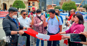 Los manifestantes incluso derramaron su sangre en la bandera bicolor en demanda de sus derechos en la Plaza de la Constitución y recibieron el respaldo del Cardenal Pedro Barreto, quien manifestó que su lucha es justa.