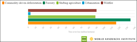 World Resources Institute (2023). Indicadores de extensión forestal.  https://research.wri.org/gfr/forest-extent-indicators/forest-loss#what-are-the-main-causes-of-tree-cover-loss
