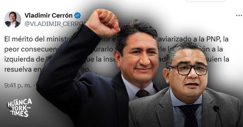 Vladimir Cerrón, prófugo de la justicia, expresó su respaldo al ministro del Interior, Juan José Santiváñez, quien enfrenta cuatro mociones de censura por su ineficiente gestión frente a la inseguridad ciudadana.