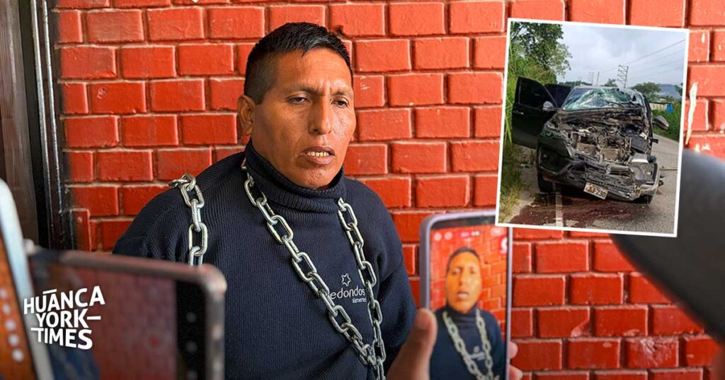 Claudio Aire Dávila, agricultor de Pichanaqui, se encadenó en puerta del Gobierno Regional de Junín para exigir el pago de S/ 22,000 por la reparación de su vehículo, dañada tras un choque con una unidad oficial. Tras 4 meses del accidente, recién llegó a una conciliación luego de su protesta.