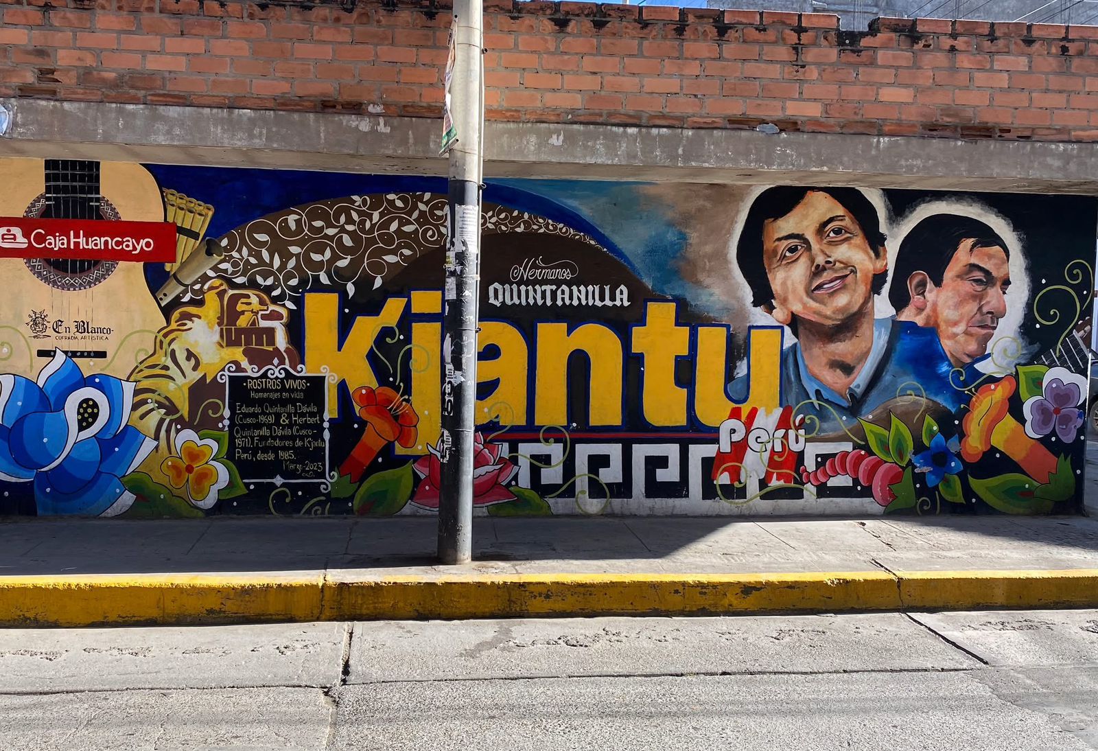 El mural que rendía homenaje a los hermanos Eduardo y Herbert Quintanilla, fundadores del grupo musical Kjantu Perú, en una pared de la esquina de las calles Cusco y Moquegua, en el centro de Huancayo, fue reemplazado por una pinta política de Omar Venero, precandidato a la alcaldía de Huancayo de Renovación Popular, lo que generó descontento en el sector artístico local.