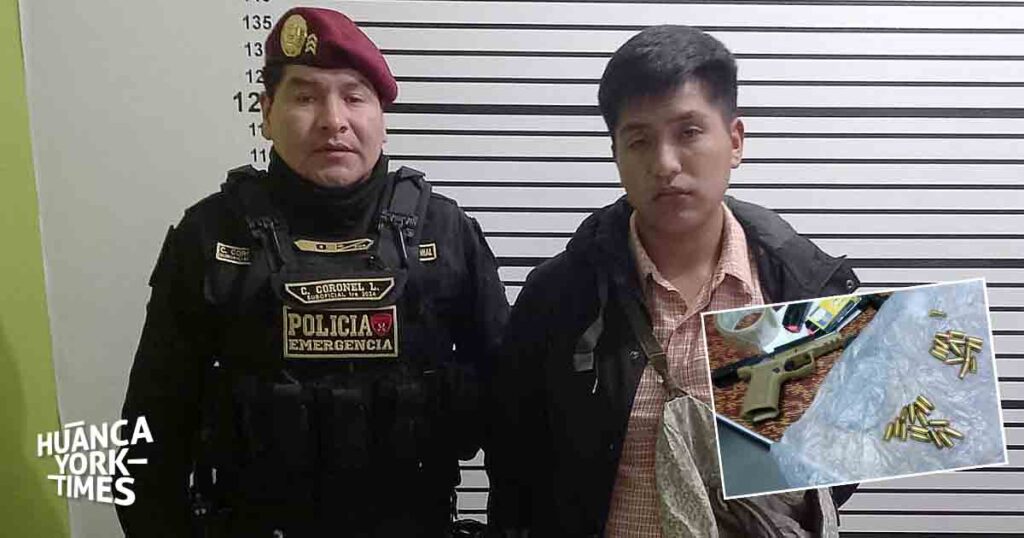 Un joven fue detenido la madrugada del domingo en la discoteca Aura, ubicada en la cuadra 6 del jirón Puno, en el centro de Huancayo, luego de protagonizar disturbios e intentar huir con un arma de fuego.
