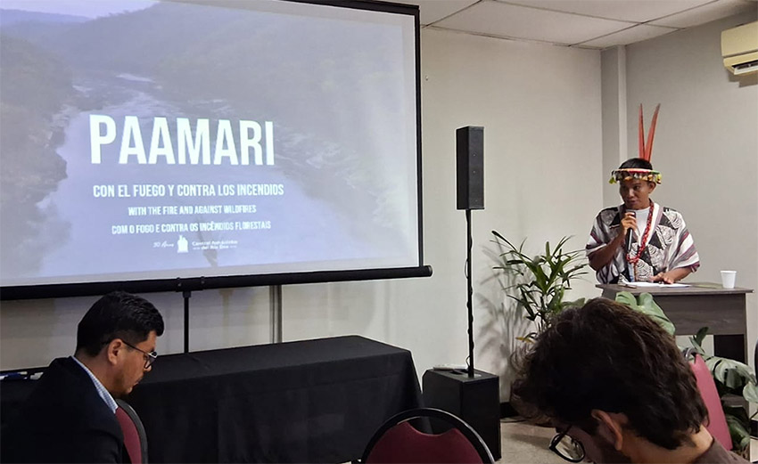 —Hemos iniciado más o menos en 2023, preocupados por la situación en la que nos encontrábamos por los incendios. Para nosotros el fuego no es algo malo. Sin fuego el pueblo no puede sobrevivir, mucho menos los pueblos indígenas del mundo. Entonces, la cultura del fuego que tenemos nosotros en nuestras comunidades nos permite que nuestros hermanos asháninkas puedan cocinar, tener curaciones. De lo que sí estamos en contra son los incendios. Los incendios son el fuego descontrolado. Ahí es donde nosotros debemos tener mucho cuidado, cada comunidad, cada comunero tiene que tener mucho cuidado y controlarlo. La estrategia nace por ello para poder, en principio, prevenir los incendios forestales, hacer el monitoreo, la mitigación de los incendios forestales y obviamente también hacer incidencia ante el Estado para que el fuego no sea satanizado en Perú. Queremos demostrar que el fuego no siempre es malo, sino que lo podemos controlar.