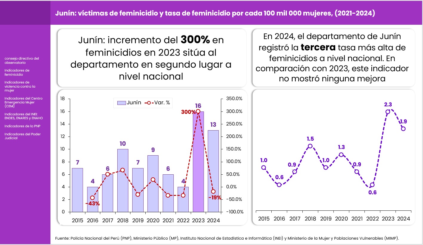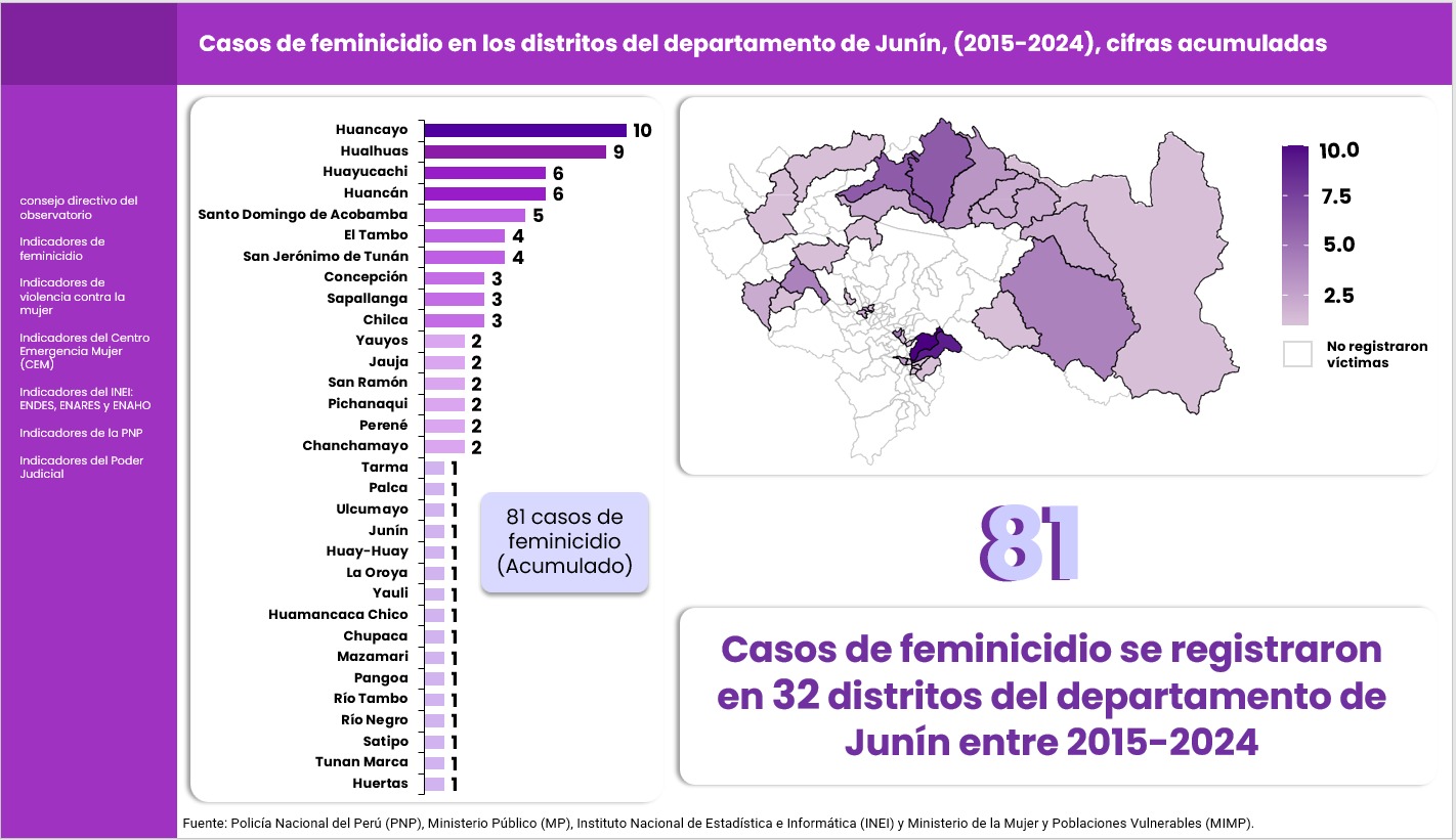 Entre el 2015 y 2024, se acumularon 81 víctimas de femicidio en Junín. Fuente: Observatorio regional de la violencia, 2024