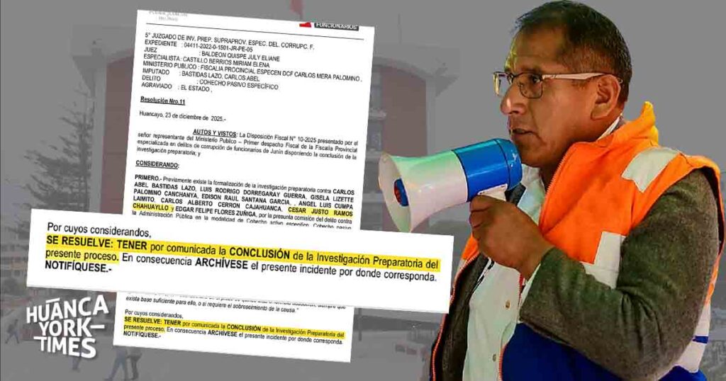Según la resolución judicial del 23 de diciembre de 2025, a la que accedió Huanca York Times, el Quinto Juzgado de Investigación Preparatoria declaró concluida la investigación. En consecuencia, el fiscal Carlos Rodrigo Mera Palomino cuenta con un plazo improrrogable de 15 días hábiles para formular acusación formal o, en su defecto, requerir el sobreseimiento del caso.