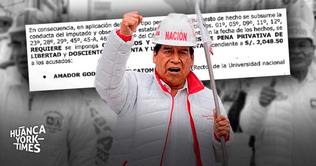 El Ministerio Público solicitó cinco años y cuatro meses de prisión efectiva contra el exrector de la Universidad Nacional del Centro del Perú (UNCP) y actual candidato número 1 al Senado por Junín del partido Ahora Nación, Amador Godofredo Vilcatoma Sánchez, por el presunto delito de peculado doloso por apropiación, tras detectar que utilizó fondos universitarios para pagar multas judiciales personales.