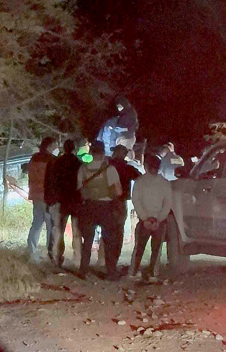 Durante el levantamiento de los cuerpos, la Policía, en presencia del fiscal, halló casquillos de arma corta dentro de la camioneta